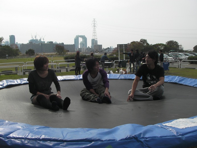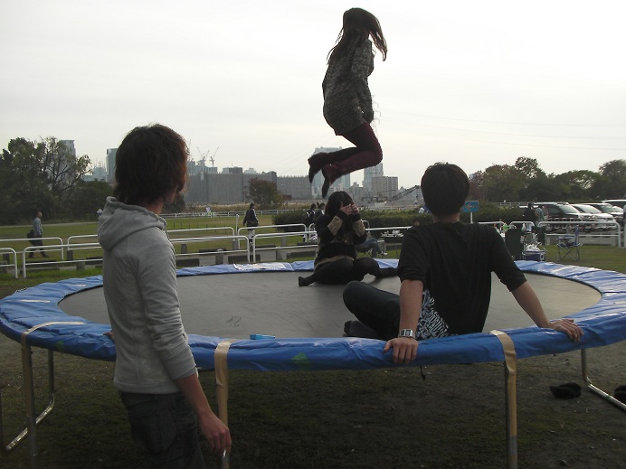 トランポリンを組み立ててもっている間に