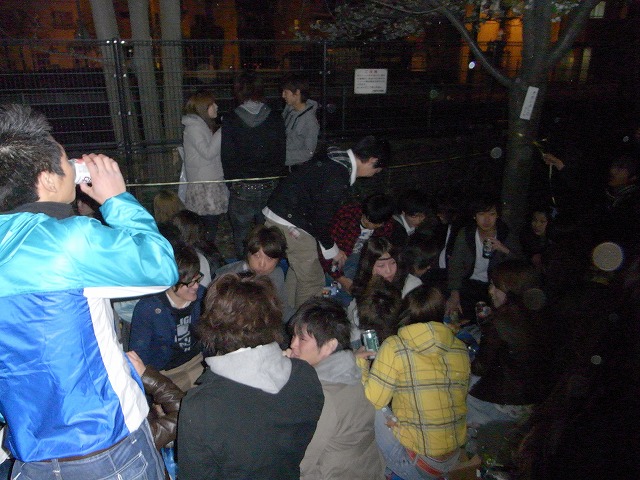 みんなで夜桜を見ながらお酒を飲んだりお菓子を食べたり、