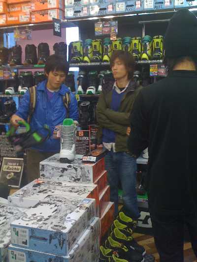 みんな、ブーツ、バインディング、ボードケースなど買いまくってました